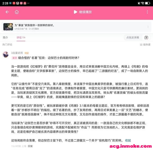 | 先总结一下吧 证据是瞎扯的 情绪是饱满的 脑子是不带的 浮木是没有的首先 我不明白谁告诉你第八章套了日式审美 一点证据没有的靠自己情绪有什么用拿不出权威人士的说法 没有切切实实的证据嘴上说着什么被人质疑文化挪用 但是连个图都没有 你不觉得搞笑吗边狱巴士爆改的从来就不只有红楼梦 堂吉诃德 呼啸山庄 白鲸记 甚至是韩国自己国家的人 都被一顿魔改 因此如果你所说的文化挪用是真的 那么他挪用的也是全世界的文化 难道只有中国人热爱自己国家的文化?自然会有人去质疑它 骂它 但很显然边狱巴士一直是steam上好评率高的神作 因此所谓文化挪用全是瞎扯 你凭什么用挪用中国传统文化来对边狱巴士玩家进行道德绑架 第二 什么叫抄袭鸣潮 第八章跟母爱有关系吗 想喷也得先搞清楚情况吧 一眼就是为了喷而喷我还是那句话 没有证据一切都是瞎扯 你所谓的“抄袭博眼球”除了你和你的同僚之外我从来没有看见任何相关说法 这一切无非是你凭借你的情绪所臆想出来的而已我说难听点 你就像隔壁阿美丽卡那位懂王 和小以明明已经快被某朗耗死了却硬说胜利 不是搞笑吗 第三 我寻思着借鉴中国传统文化的也不少啊 终末的女武神中胜于苦练败于肉身的吕布 受到诅咒的万王之王秦始皇 龙珠中的孙悟空 镇魂街的许褚 都是外国动漫借鉴中国文化如果你果真是爱国者 誓死要捍卫中华文化 那么你不应该只攻击边狱巴士 这些“爆改”中华文化的作品也应该在你的反对之列 如果你认为这些都是神作唯独边狱巴士是抄袭 那么这就显现出了你的目的不纯 你只是为了攻击边狱巴士而将中国的传统文化用作你的武器由此可见 你根本就不是什么爱国者 因为真正的爱国者不会用自己国家是优秀传统文化当作刀枪盾牌 你无非是打着爱国的旗号 出于你自己的目的 将中国的传统文化用作肆意攻击他人的武器 本以为可以占据道德高点 但实际上你自己才是最不尊重中国传统文化的人 第四 什么叫做丢失自己的传统文化 是一个民族 无限的贬低自己的文化 去崇拜别的国家的 别的民族的文化 这叫做没守住文化的根但是如果你仔细观察 就会发现当代的年轻人无限热爱中国的传统文化 也正是因为如此 我们才会觉得第八章好 从孔子的仁义 宝玉的善良 到改变大观园的美好愿景 官方做的都非常好 在我看来 这才是尊重中华文化的表现 我认为这并不是挪用 而是借鉴而已我认为 一个国家的文化被封死在国内 无法走出去面向全世界 这才是可悲的事 因为这只有两种情况 一种是这个国家太过弱小以至于没有人注意到它的文化 另一个是这个国家的文化已经被摒弃消失 被取而代之 中华文化之所以能被外国看到 是因为我国的综合实力变得强大 越来越活跃于世界上 试想我国如果还是百年前那个积贫积弱的旧中国 你觉得哪个国家还会在游戏中融入中国的元素? 这就是你想要的“守住了传统文化”吗 我说白了 你拿所谓传统文化说事 一没有证据 二没有事实 你以为这样就能占据道德制高点 但是你恰恰才是那个最不尊重传统文化的人 因为你用中国的传统文化来肆意攻击你的同胞 来用作你的挡箭牌真正爱国者不会用中国的文化中国的元素作为攻击中国人的武器 应当自觉承担起传承中国文化的重任 而不是打着爱国的旗号 恶意将玩这个游戏与不尊重传统文化捆绑起来 而这么做的你,才是那个最不尊重传统文化的人。 ![]() ![]() |